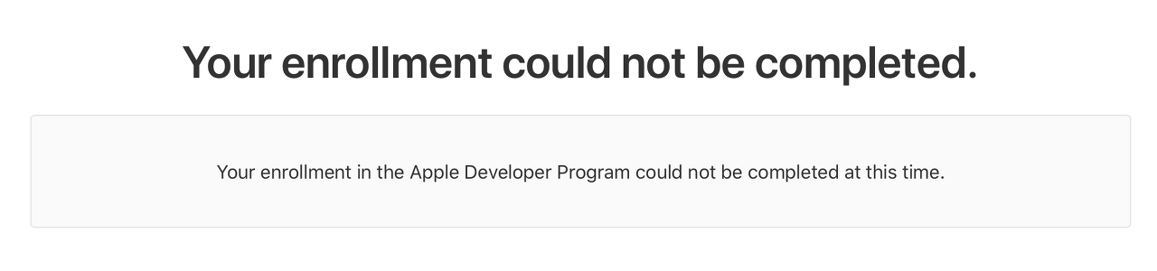Your enrollment in the Apple Developer Program could not be completed at this time.