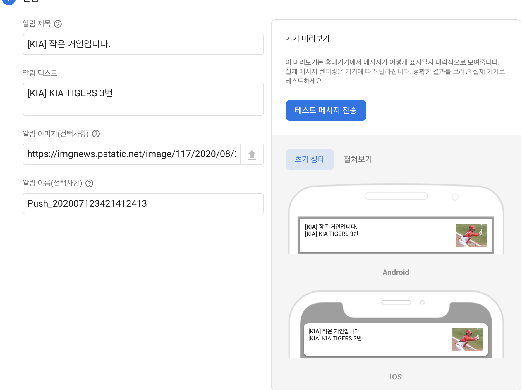이미지도 저 안에 fcm_options에 있는 image를 가져다 뿌려준건데.. 아무튼