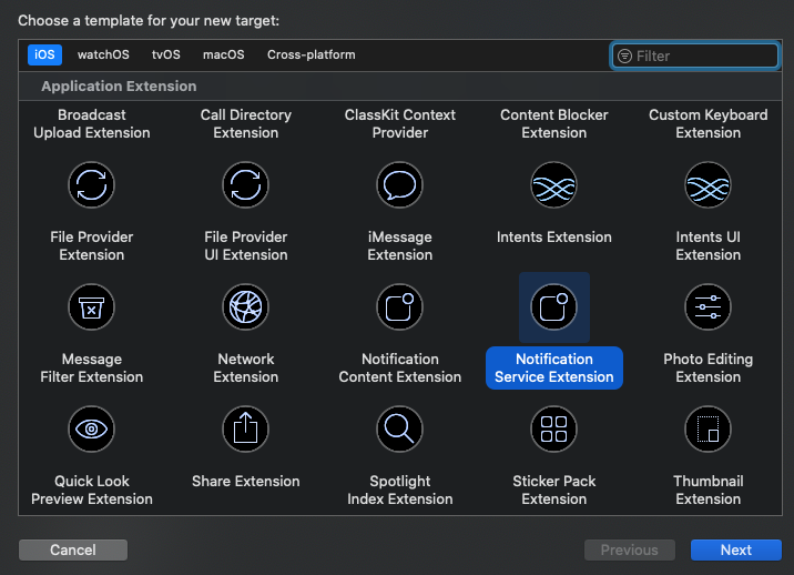 이름을 주셔야 하는 데 전 그냥 Notification Service Extension이라고 주었어요.